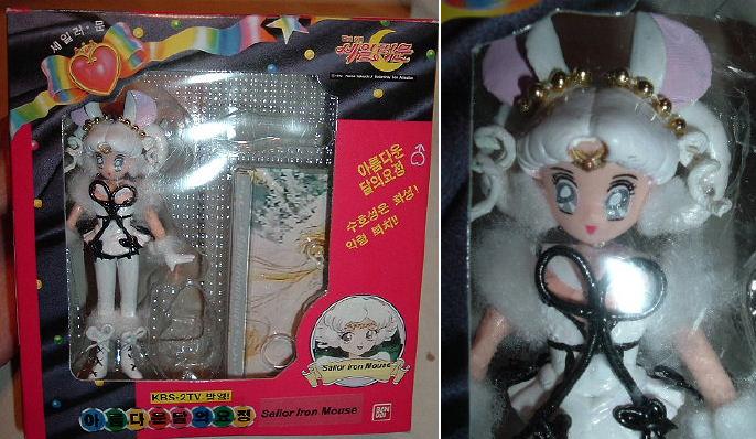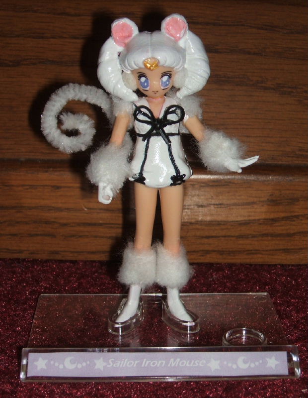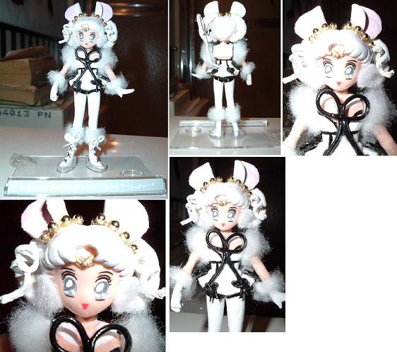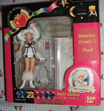 The BanDai version also includes a printed "mirror" card (laminated and carded)to match the other BanDai Petit figures in your set, and a clear base with the stars and waves on the name tag "Sailor Vesta".